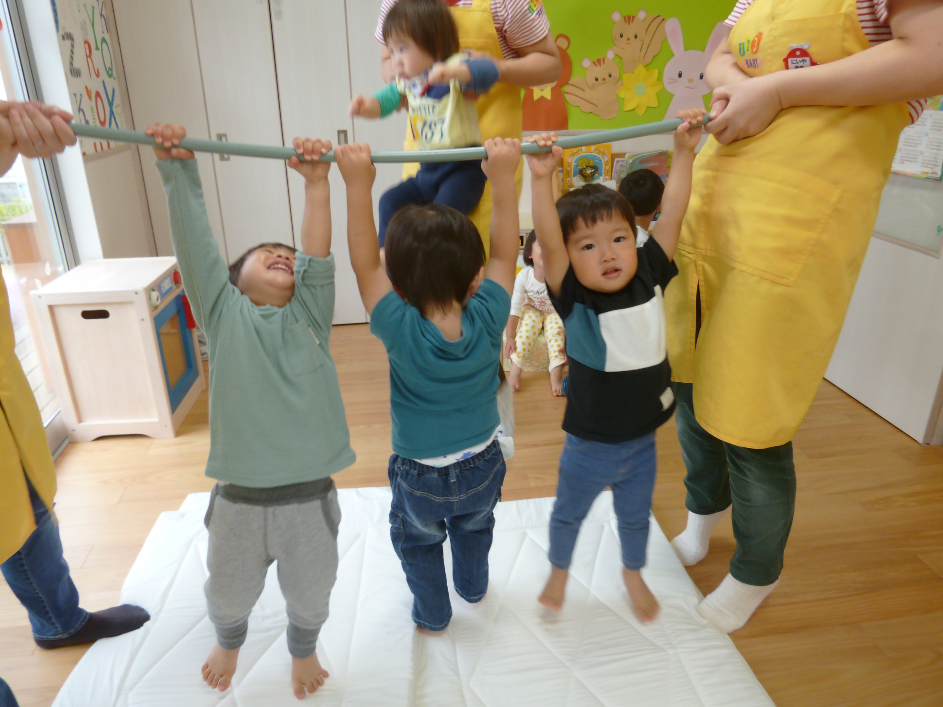 たいよう組さんもつばさ組さんも、しっかりと棒をつかんでぶら下がっていたよ!