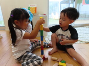 積み木を協力して積み上げたり、おばけごっこをしたり