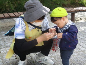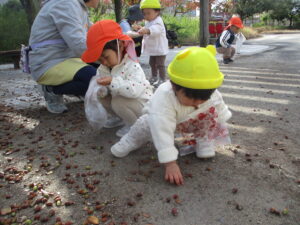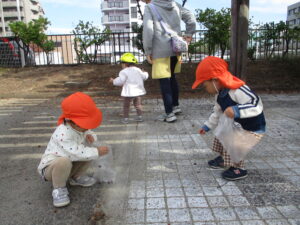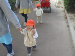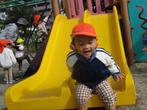 ブログ こんにちは! こんにちは! 123forbabysの子どもたちは、今日も元気いっぱい(^^♪ うみ組さんとつばさ組さんは一緒になかよし公園に行ったよ しっかり歩けるようになったつばさ組さん。先生と手をつないで遊歩道をお散歩! 紅葉し始めた木々のトンネルをぬけると公園に到着(*^^*) 公園にはどんぐりがいっぱい!みんな夢中で拾っていたよ(^^♪ 落ち葉の上を歩くとカサカサ、サクサク音がしておもしろいね 遊具でもたくさん遊んだよ(^O^) みんなの笑顔がいっぱい☺ あ~今日も楽しかったな!