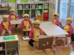 「いろいろきのこ」の絵本を見たり、給食の先生のお話を真剣な眼差しで聞いていたよ