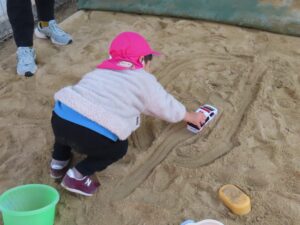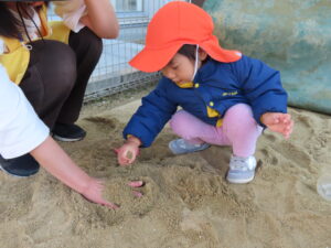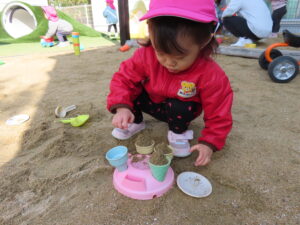 砂場ではアイスクリーム作りや先生の手を埋めてみたり(^^)