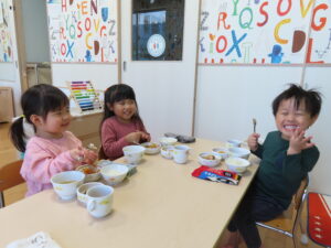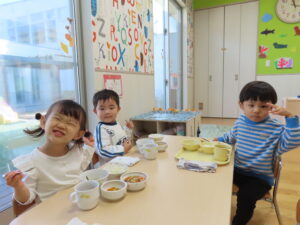 楽しみにしていた給食の時間☺「きのこあった、美味しい!」とモリモリ食べていたよ