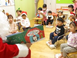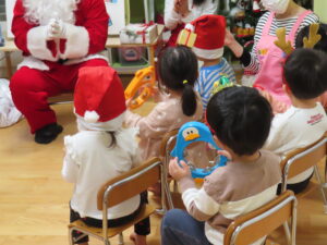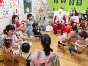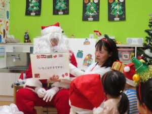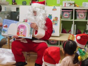 サンタさんが子どもたちの質問に答えてくれたり絵本を読んでくれたり、楽しい時間を過ごしたよ🎅
