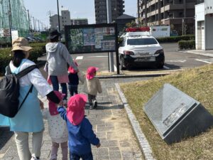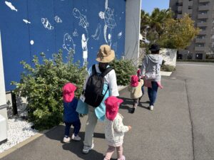 たいよう組さんはお散歩へ。先生と手をつないで、しっかり歩く姿が頼もしいね(^^)