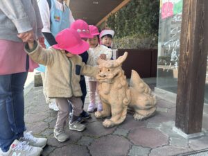 お花を見たり、シーサーに「こんにちは」とごあいさつ(^^)