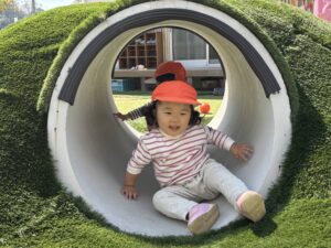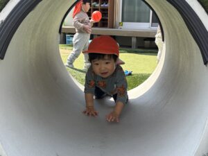 トンネルや車、ボール遊びなどあちこち探索しながら楽しそう