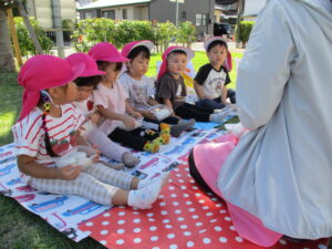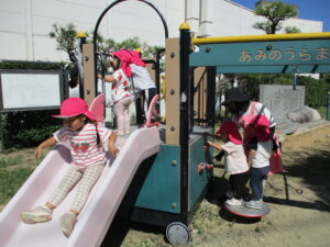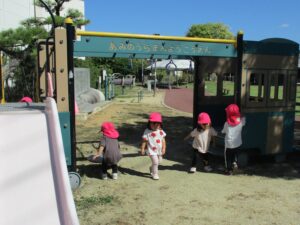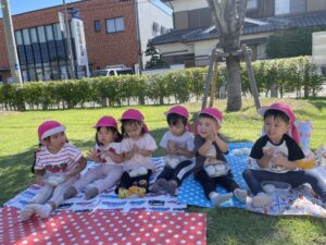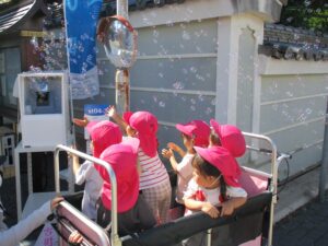 ブログ 瀬戸芸ピクニック🎵 こんにちは! 123forbabysの子どもたちは、今日も元気いっぱい(^^♪ たいよう組さんは瀬戸芸ピクニックに行ったよ! 町屋が残る古街を、ゆっくり散歩しながら作品を鑑賞したり 他の場所から遠隔操作で出てくるシャボン玉に大喜び!(^^)! ちょっと一息つい後は 公園でいっぱい遊んだよ(*^^*) みんなでお弁当「いただきま~す!」 あ~今日も楽しかったな!
