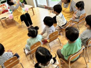 お誕生日会では、みんなで歌をうたったり、手遊びやパネルシアターを楽しんだよ