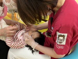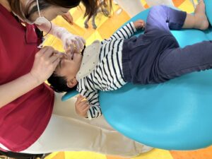 待合室では楽しいおもちゃで遊びながらリラックスして過ごせたよ。にっこり笑顔の一日だったね☺